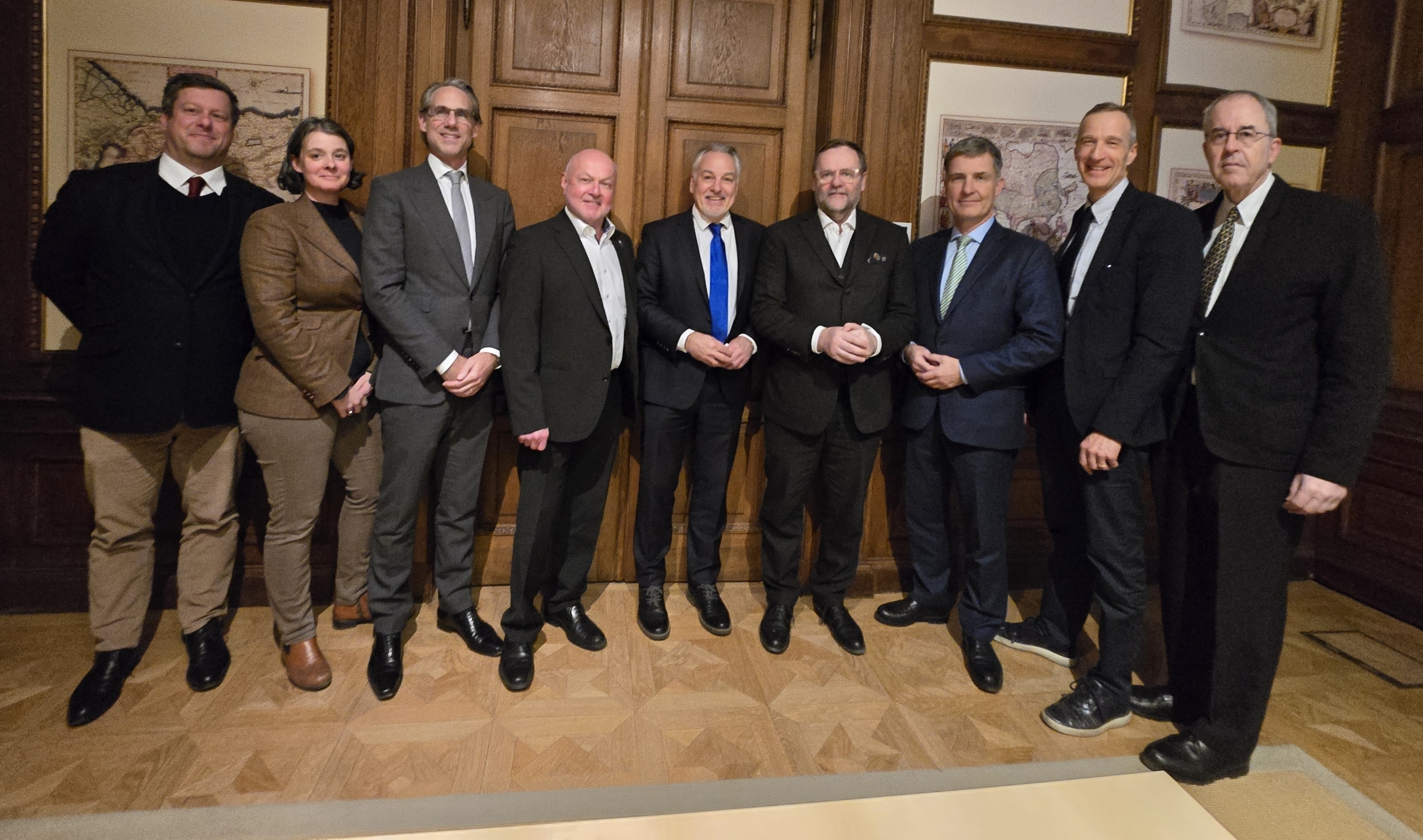 v.l.n.r.: Mag. Stefan Schneider (Apothekerkammer), Mag. Kristine Rosner (Zahnärztekammer), Präsident DI Marc Keschmann (Patentanwaltskammer), EWSA-Delegierter Baurat h.c. DI Rudolf Kolbe (Bundeskammer der Ziviltechniker:innen), BUKO-Präsident Dr. Daniel Alge gefolgt von STS Sepp Schellhorn, Präsident Mag. Philipp Rath (KSW), Dr. Lukas Stärker (Ärztekammer) sowie Dr. Christian Sonnweber (Notariatskammer). Präsident Dr. Armenak Utudjian (ÖRAK) war ebenfalls beim Termin anwesend.